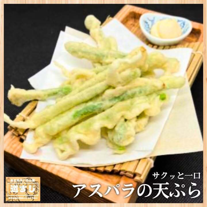 みずみずしい旬のアスパラを、サクッと軽やかな衣で包んで揚げました😊